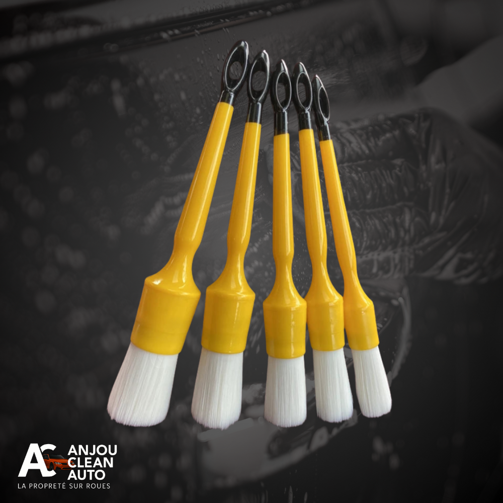 Brosses de detailing multi-tailles conçues pour nettoyer efficacement sans rayer. Leur structure dense en poils plastiques PBT assure un nettoyage précis, même dans les endroits étroits. Manche ergonomique solide pour une bonne prise en main. Compatibles avec tous types de véhicules et parfaites également pour un usage domestique (claviers, recoins, etc.).